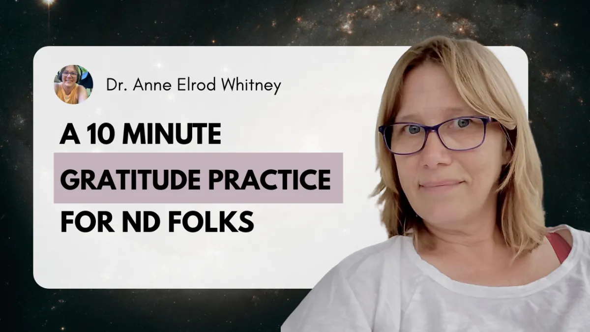 In this free 10-minute video, Dr. Anne Elrod Whitney shares two neurodivergent-affirming gratitude practices drawn from positive psychology research and 25+ years of work as a writing researcher and educator.